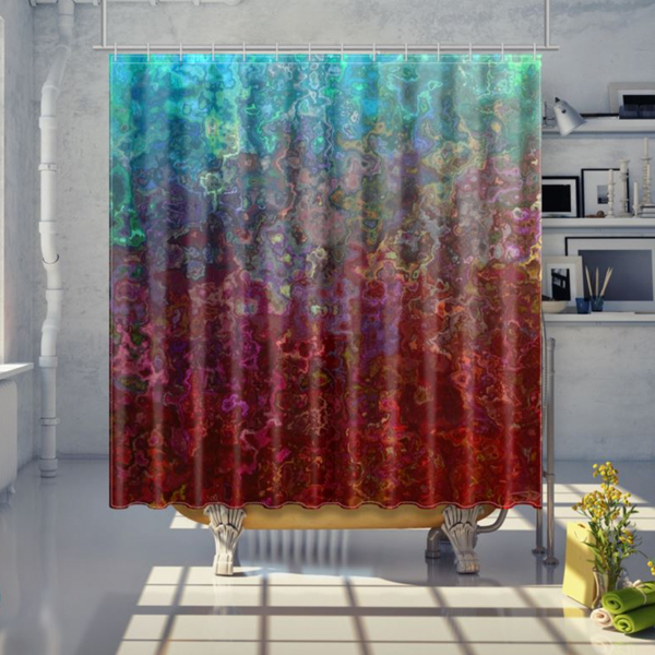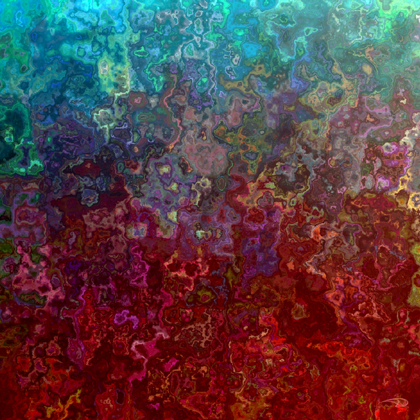 A bright and bold digital watercolor design that fools the eye as colors collide ranging from turquoise (top) to bright red (bottom).